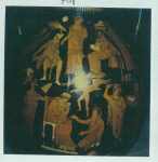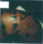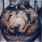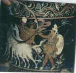 - A dramatic scene from an ancient metope, which adorned the side of a Greek temple.