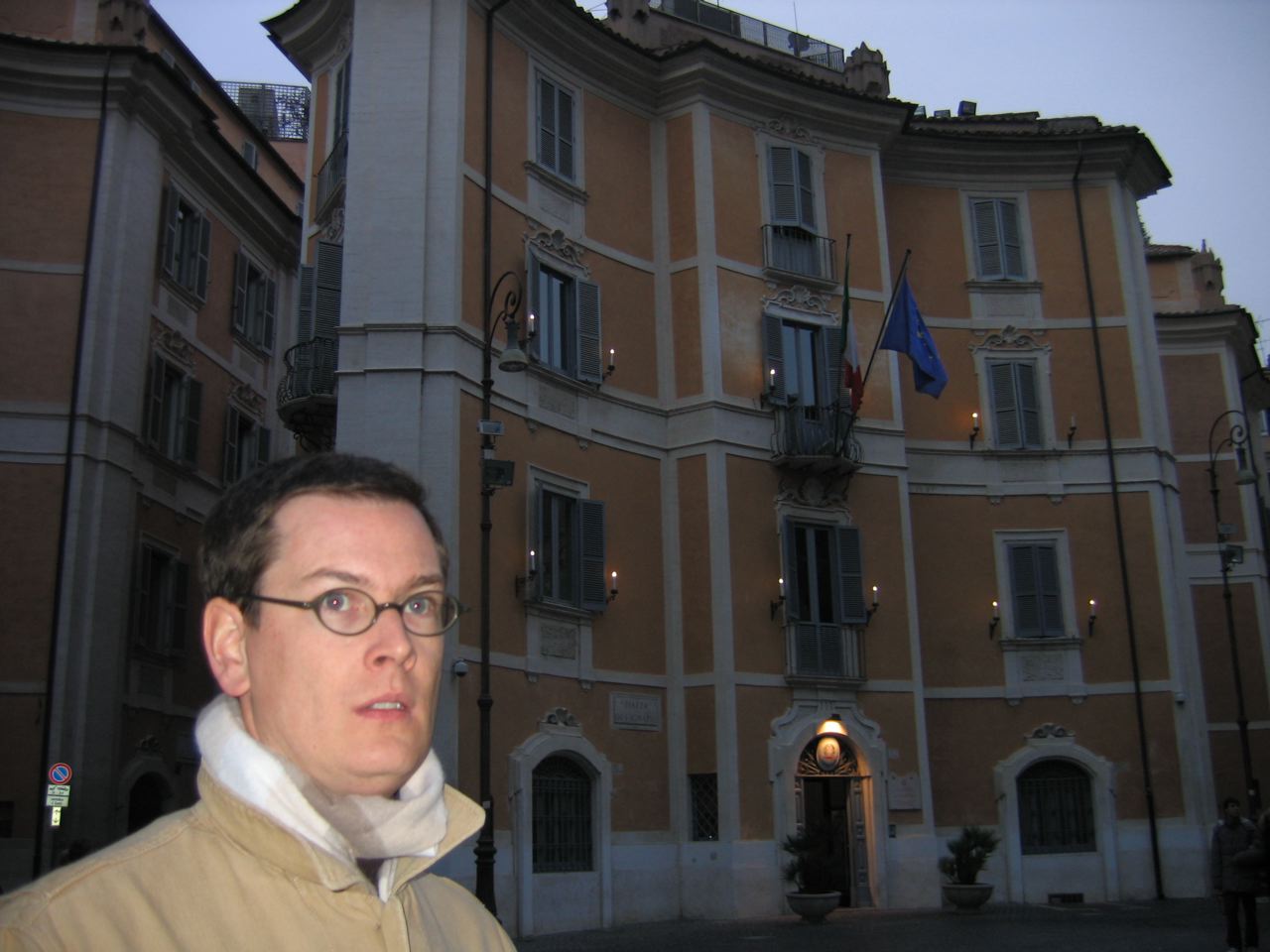 Co-author Jason Felch outside the headquarters of the Carabinieri’s art squad, a few blocks from the Parthenon in Rome.