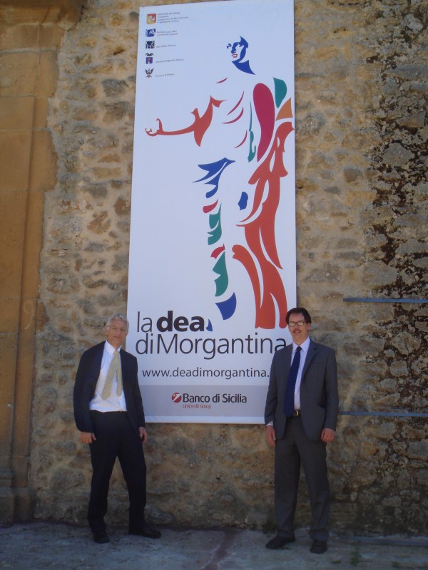 The authors in front of the Aidone Archaeological Museum on the day of the opening of the goddess exhibition.