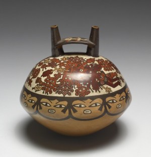 A couple of weeks ago I took a train to the handsome city of Baltimore and saw the Bourne collection in its new home. It’s a revealing show with some lovely artifacts, including some I don’t remember seeing in Santa Fe. The painted Nasca stirrup bottles (right), masterpieces of design and economy dating from about 500 CE, alone were worth the trip.