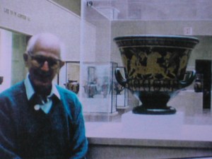 Robert Hecht poses in front of the famous looted Greek vase he sold the museum in 1972 for $1 million.